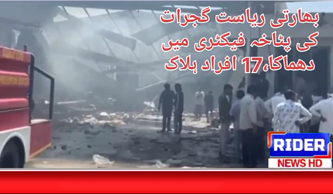 بھارت، گجرات کی پٹاخہ فیکٹری میں دھماکا ہوا جس کے نتیجے میں17افراد ہلاک ہوگئے۔ بھارتی میڈیا کے...