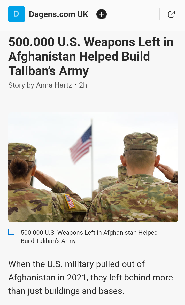 آنلائن ،امریکی فوج کے چھوڑے گئے ہتھیاروں میں سے طالبان نے دہشتگردوں کو بیچ دیے ہیں۔ برطانوی...
