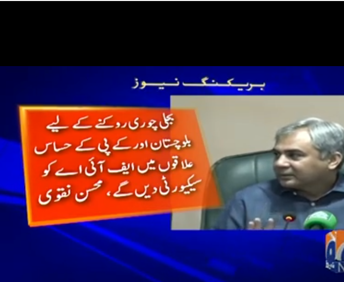 محسن نقوی نے مزید کہا کہ بجلی چوری روکنے کےلیے بلوچستان اور کے پی کے حساس علاقوں میں ایف آئی اے کو سیکیورٹی دیں گے